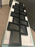 - 118cm x 36 cm - zwart - 14 foto’s - zwarte achtergrond- pass partout - kan zowel in lengte als breedte worden opgehangen - binnenkant kaders: 14cm x 9cm - nooit gebruikt - nog in verpakking - geen k