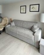 Zetelbed / slaapbank in zachte grijze stof. + 2 Kusentjes met een pocketveren matras van 160x200 en 20 cm dik matras zo goed als niet gebruikt. Weg wegens aankoop bedkast. Ophalen in de panne