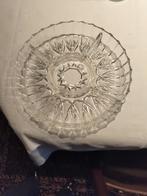 Glazen borrelschaal. In 5 delen verdeeld, 4 rondom en 1 in de midden .