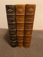 Set antieke franse boekjes met mooie lederen rug hoogte 18 cm evt verzendkosten zijn voor de koper
