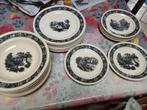 Service boch vintage paysage noir et beige, 8 assiettes plates 8 assiettes profondes 9 assiettes à dessert