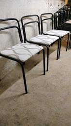 Te koop: vintage zwarte metalen buizenframe stapelbare stoelen ontworpen door vittorio parigi & nanni prina voor moltini, model onix. De periode is begin jaren zeventig vandaar de space-age, bauha