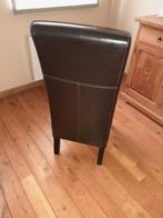 Te koop 2 lederen stoelen, van degelijke kwaliteit. In gebruikte staat. Rugleuning hoogte 105 cm. Prijs: 25€ per stuk. Enkel