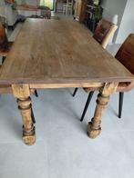 Zeer zware, massieve eettafel, zonder stoelen 77cm hoog, 81 cm breed en 184 lang tafel werd enkele jaren geleden afgeschuurd en behandeld. Vraagprijs 165 euro