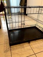 Zwarte hondenbench m - 77 x 47 x 55 cm. De beng is gemaakt van metaal en heeft een vrij dunnen draaddikte. Er zit een kunststof lade in die uitschuifb