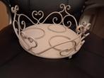 A vendre: 1 joli plateau en fer forgé de couleur beige clair pour la décoration. Il contient 3 emplacements pour pots (fleurs, plantes ect....Est fournis avec ce plateau, 4 pots en verre ( 1 gratis).