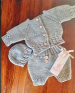 Petit ensemble mixte comprenant un gilet/brassière, petit blommer et le bonnet pour bébé 3 mois. Refait sur commande en d'autres coloris. Travail rapide et soigné, maison non fumeur. Un renseignem