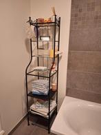 étagère de salle de bain magnifique et élégante. Métal peint en noir avec étagères en verre. Nous allons nous en débarrasser à cause du double usage. Nous en avons deux mais seule une rentre dans notr