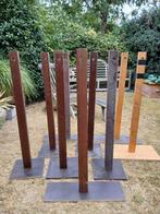 Lot van 9 staanpaaltjes. Heel stevig gemaakt. Je kan er een touw insteken om iets af te bakenen of je kan er buizen insteken om iets op te hangen. Afm