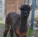En raison de la réduction de notre troupeau. Nore est une femelle alpaga de 5 ans, de couleur brun foncé et calme, qui est devenue mère pour la deuxiè