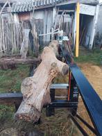 Kleine zagerij voor stammen tot +- 50cm diameter en lengte tot 5m. De zaag is een elektrische kettingzaag met een 8kw motor op drijfkracht (360v). Het blad is 60cm lang, maar andere lengtes kunnen ook