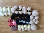 Resten van breidwol diverse soorten en kleuren. Totaaln1,9 kg. Nieuwe en gebruikte.
