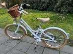 Vélo fille 20 pouces, couleur : blanc avec boules dorées, frein à pédale arrière, 3 vitesses, aluminium, panier, led, vélo très pratique et léger.