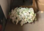 Mooi bloemstuk met wit tinten en struisvogel pluimen 65x35cm. Prijs is voor 1 maar heb er 4.