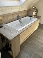 Af te halen , àlles steigerhout, douche wand(glas) ,douchebak , lavabo en kraan , bad met jetstream en badkraan , hangtoilet met toebehoren 250 euro v
