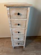 Landelijk kastje in lichte eik gepatineerd met 5 laden. Ideaal voor in living of inkomhal. Als nieuw. Geen gebruiksschade afm h =