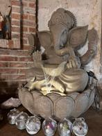 Ganesha boeddha tuinbeeld met fontein en licht ,kunststeen pomp en verlichting werken zeer goed enkel 2 maal de fontein aan gezet 90 cm hoog 60 cm breed en 46 cm diep zeer zwaar hulp nodig bij tillen!