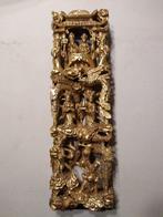 Panneau chinois en bois doré sculpté à la main dimensions : - hauteur: 43,5 cm - largeur : 12,5 cm - profondeur : 5 cm sculpté à la main dans du bois, doré sur le devant, le dos et les côtés peints ic