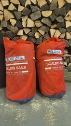 Grootzeil ca 12 x 7 m rolgenua ca 10,50 x 4 m fok 8,30 x 2,40 m merk scaldis sails kleur bruin polyester staat gebruikt, technisch in perfecte staat