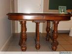 Antieke volhouten tafel met een glazen tablet. Zeer goede staat!!! De tafel kan uitgetrokken worden, waardoor hij met behulp van 2 tussenstukken (deze zijn geen massief hout) een heel stuk groter word