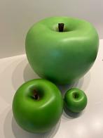 3 granny smith appels in keramiek (klei met natuurlijke pigmenten). Handgemaakt. Braziliaanse beeldhouwster selma calheira. In perfecte staat. Geen enkele beschadiging. Mooi in de keuken, op het terra