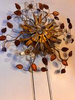 Ancienne applique sur un support constitué de feuilles d’acanthe et de chêne dorées ; le décor est complété par six branches dorées garnies de feuilles en verre coloré dans les tons de rouge, dont tro