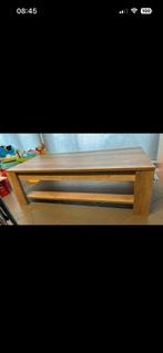 Salontafel (140x68x45), eventueel met bijpassend tv-kastje (180x42,5x52,5 ). Moeten weg owv verhuis. Hier en daar een gebruiksspoor, maar nog in mooie staat.