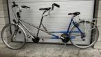 Tandem pour un usage quotidien, selles et guidon réglables en fonction de la taille des personnes. Taille 50 à l'avant, taille 52 à l'arrière. Hauteur de selle réglable, actuellement 76 cm à l