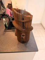 Deze prachtige handgemaakte houten designlamp is een echte eyecatcher in elk interieur. Het unieke, golvende lijnenspel zorgt voor