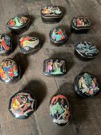 In uitmuntende staat zonder beschadigingen en/of andere gebreken. 12 Prachtig gedecoreerde porseleinen muziekdoosjes , met de hand beschilderd met 24