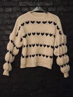 Superbe pull femme en maille, neuf avec étiquette, jamais porté. Couleur blanc écru avec motifs cœurs noirs, très tendance et original. Fabrication made in italy, avec une maille épaisse et de qualité
