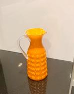Belle carafe en verre vintage d'un orange éclatant avec un décor de clous. Design typique du milieu du siècle des années 60/70, dans le style du verre d'empoli (italie). La carafe mesure 26 cm