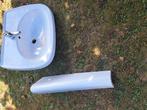 évier avec pied et robinet. Le pied est légèrement fissuré mais est solide. A venir chercher sur jemeppe sur sambre.