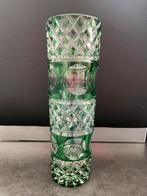Magnifique vase en cristal vert taillé à la main de 20 cm. 689Gr