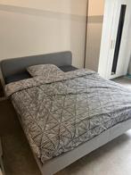 Bed 160x200 cm en matras bed: slattumgestoffeerd bed, knisa lichtgrijs, 160x200 cm matras: vesteröypocketveringmatras, middelhard/lichtblauw, 160x200