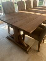 Prachtige massieve kloostertafel met 8 bijpassende stoelen zoekt een nieuw thuis! Deze imposante kloostertafel biedt makkelijk plaats aan 8 personen en past perfect in een landelijke of ruime eetkamer