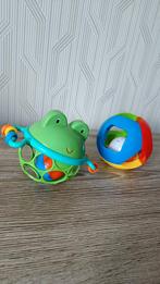2 kleurrijke speeltjes om baby's aandacht en grijpactiviteit te oefenen. De speelse vormen stimuleren moeiteloos de interesse van je kleintje.