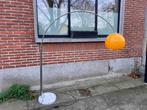Zeer mooie retro booglamp met oranje kap. Stijl jaren 1960 zware stenen voet. De chromé arm is verstelbaar. -Hoogte +- 178cm -bree