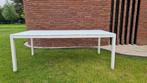 Stevige witte tuintafel van bristol met glazen blad 2m x 1m aluminium frame.