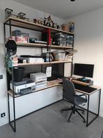 Stevig stalen wandrek en bureau met rubberwoodplanken. Onderaan is een magnetische wand. Op maat gemaakt. Bureau kan losgemaakt wo