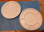 10 fondueborden witte porselein links op foto : 6 stuks ¤ 24 cm rechts op foto : 4 stuks ¤ 26 cm worden per 4 of per 6 of per 10 verkocht 1,50 € per bord in perfecte staat !! Enkel ophalen in wet
