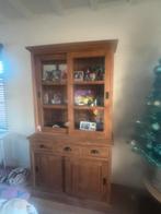 Hierbij verkopen wij onze volledige eetkamer en teak vitrine kast 210 cm hoog 115 cm breed onderste deel 52 cm diep dressoir 90 cm