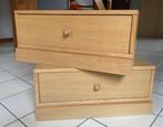 Twee lage nachttafels uit stevig blankhout . Duits merk ‘die collection’. Voor laag bed. Afmeting : 60 cm breed, 40 cm diep, 27 cm