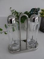 Ensemble huile et vinaigre alessi. Design par ettore sottsass, années '90 acier inoxydable 18/10 et verre cristal. Nouveaux bouchons verseurs de 13,15€ (voir facture) dimensions : h 19 cm, l
