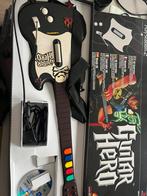 2 gitaren voor de ps 2, 1 daarvan is veel gebruikt, degene zonder stickers niet. De stickers zitten er nog bij maar plakken niet meer. De 3e gitaar, met bruin, zit er ook bij maar geen idee waar die b