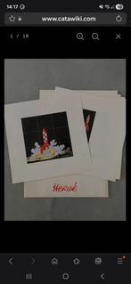 Gezocht💥1985 kuifjes portfolio,,persdossier v.herge voor emaillerie belge over de maan emaille borden,,met 9 pagina's + samenvattend vel ,,part uit 1985 die 8 afdrukken van de geëmailleerde plate