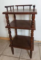 Table d'appoint en bois. 3 ÉTages. Hauteur avec bords : 78cm, sans bords : 71,5cm. Longueur : 31cm. Largueur : 37,5cm. A venir chercher à domicile (affligem). Ou contactez-moi pour une éventuelle