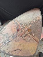 -table sculptée originale de l'artiste addie stam - modèle montmartre - taille 135x75 cm - composition en ardoise, pierres précieuses, fossiles, métaux, etc. - Est une nouvelle œuvre unique - diff