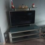 Long 123 cm haut 134 cm gris métal et verre bon etat est vendu le.meuble seul.