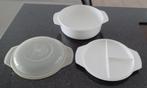 Kunststof pot voor magnetron, diameter 22 cm, 1,9 liter, merk regal ware. Met bijbehorend bord met vakjes, handig om overschotjes